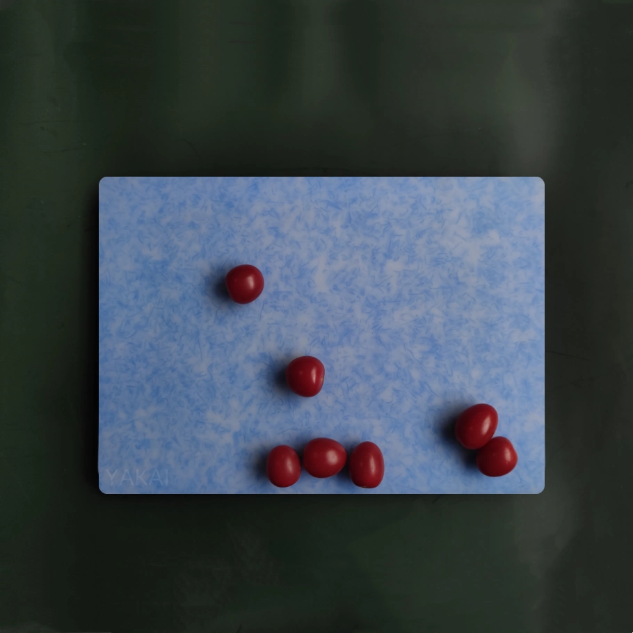 We repurpose UHMWPE (Ultra High Molecular Weight Polyethylene) and HDPE (High-Density Polyethylene) into functional and beautiful boards. They are heavier than you might expect, easy to clean, resistant to mildew, acid, and alkali, and durable. The Yakai recycled chopping board is designed for durability and can be recycled again if desired.